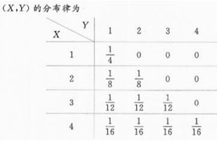 设随机变量X在1,2,3,4四个整数中等可能地取值,另一随机变量Y在1~X中等可能的取值,试求(X,Y)的分布律。