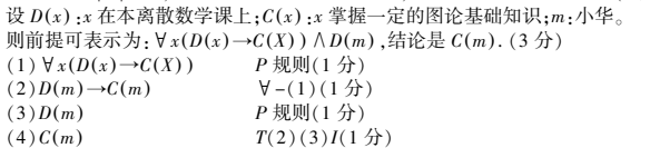 证明前提“在本离散教学课上的每个人都掌握一定的图论基础知识”和“小华是本课上的学生”,可得结论“小华掌握一定的图论基础知识”。