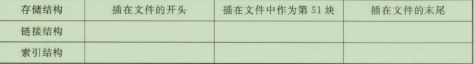 设一个文件由100个磁盘物理块组成,已处于打开可读写状态,主存中已有待写入文件的一物理块的信息。对于链接和索引两种存储结构,分别计算执行下列操作时应启动I/O的次数,填入下面表格中,并简要说明理由: