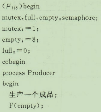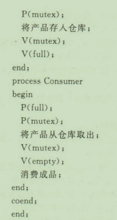 假设有一个成品仓库,总共能存放8台成品,生产者进程生产产品放入仓库,消费者进程从仓库中取出成品消费。为了防止积压,仓库满的时候就停止生产。由于仓库搬运设备只有一套,故成品的存入和取出只能分别执行,使用P、V操作来实现该方案。