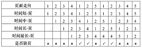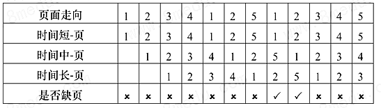 表中,“时间短一页'、“时间中一页”、“时问长一页’’和“时间最长一页'分别表示页面在内存中未使用时间的长短。