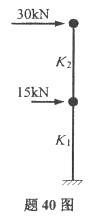 作用于某二层框架楼层标髙处的水平力分别为F1=15kN,F2=30kN,各层柱的侧移总刚度分别为K1=31000kN/m,k2=43000kN/m,试求该框架的顶点侧移值(mm).