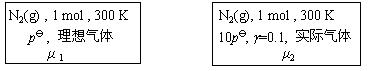 比较如下两筒氮气化学势的大小(为逸度系数),答案应为