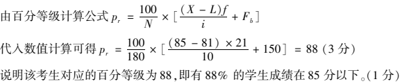 - 教育统计与测量(00452) - 专业知识收录平台">180名考生语文成绩的累计次数分布,如题22表所示。其中,A考生的成绩为85分。