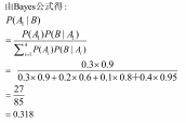 小王从外地来本市参加会议,已知他乘火车、轮船、汽车、飞机的概率分别为0.3、0.2、0.1、0.4,而他乘火车、轮船、汽车、飞机准时到达的概率分别为0.9、0.6、0.8、0.95。如果他准时到达了,请问他乘火车来的概率是多少?