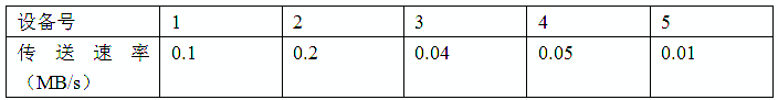 某字节多路通道连接5台外设,数据传送速率分别如下表所示:(1)计算所有设备都工作时的通道实际最大流量;(2)如果设计的通道工作周期使通道极限流量恰好与通