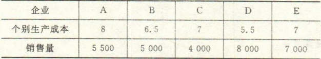 某部门内部的五个企业生产同种产品的个别生产成本和销售量见下表,求该产品的社会生产成本。(单位:元/件)
