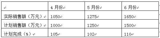 某企业2014年第2季度销售计划完成情况如下表,则该企业该季度销售额平均计划完成程度为