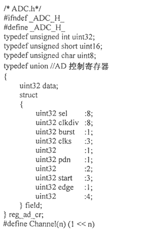 对如题40图所示电路,編程实现如下功能:利用软件启动方式,循环对AD0.1引脚(引脚13)电压进行A/D转换,并利用LPC2138的UART0模块将转换结果输出。将程序中标有编号的横线上空缺的内容补充完整。