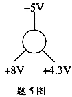 已知某晶体三极管的三个电极电位如题5图所示,则该晶体管的类型为