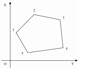 丈量某地块面积,如题图,呈五边形形状,利用全站仪测定各边界点坐标,坐标值分别为:1(180,220),2(240,280),3(220,340),4(140,360),5(120,240)(单位:m)。利用坐标解析法计算该五边形地块面积。