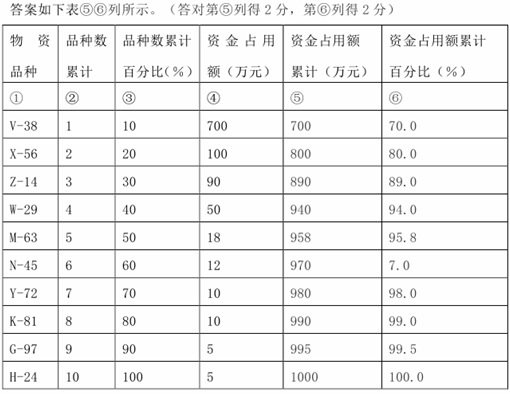 答:(1)(2)根据计算结果,M-63、N-45、Y-72、K-81、G-97、H-24属于C类物资。