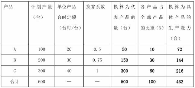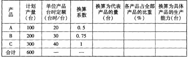 要求:(1)求出以C产品为标准的车床组的生产能力。(2)确定下列表中的所有空格内数据