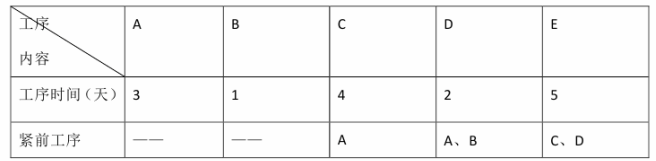 已知某项加工任务共有A、B、C、D、E五道工序,工序之间的关系及工序时间见下表: