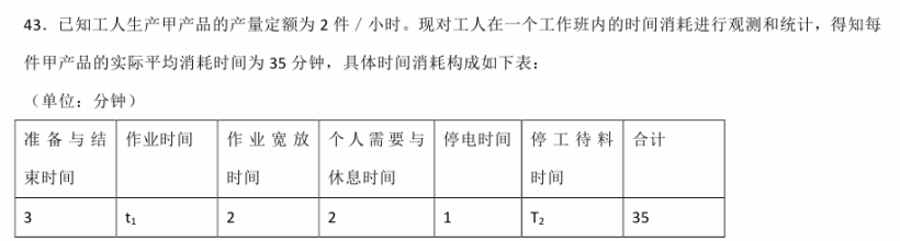 要求:(1)求甲产品的工时定额:(2)根据甲产品的工时定额,求上表中的作业时间t1和停工待料时间t2