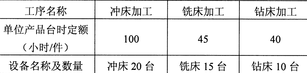 某车间由冲.铣.钻三个工序组成生产齿轮产品,现有生产设备及各工序台时定额如题42表所示。