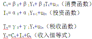 考虑以下扩展的凯恩斯收入决定模型:用阶条件检查方程组的可识别性有