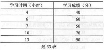 检查5位同学《数量方法》课的学习时间与学习成绩间的关系,得到如题33表所示的数据: 要求: (1) 计算学习时间与学习成绩之间的简单相关系数; (2) 确定学习成绩依赖学习时间的直线回归方程; (3) 计算回归方程的