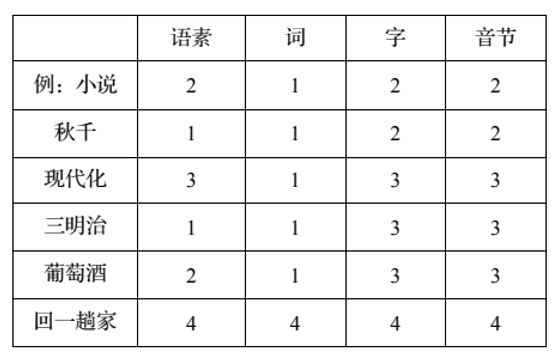 把题34表里各单位中包含的语素、词、字、音节的数量填入空格,并将该表抄写在答题卡上作答。