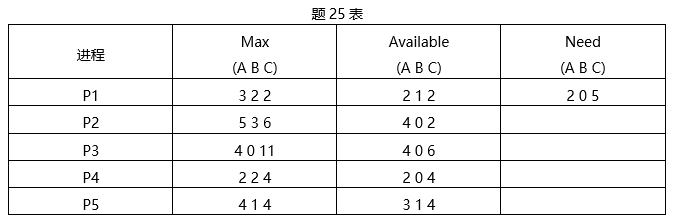 在银行家算法中,若出现题25表所示资源分配情况,则存在的安全序列是______。