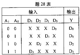 某组合逻辑部件真值表如题28表所示,该部件是____。