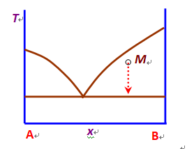 单低共熔双组分系统T-x相图如图所示。当物系点M随温度下降时,固相物质与液相物质重量的比值________。