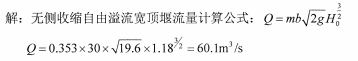 无侧收缩直角进口宽顶堰自由溢流,堰宽为30m.已知流量系数为0.353,堰上水头为1.18m,试问过堰流量为多少?