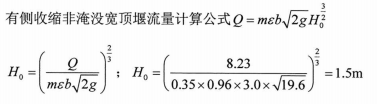 有侧收缩宽顶堰自由溢流,已知堰宽为3.0m,侧收缩系数为0.96,流量系数为0.35,如需通过的溢流量为8.23m³/s,堰上水头应为多少?
