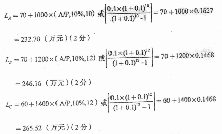 计算结果表明,方案A费用最低,所以选方案A。