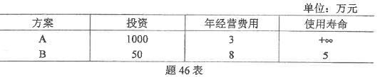 某项目有A、B两种可供选择的方案,各方案相关数据如题46表。若基准收益率为5%,试比选出最优方案。(计算结果保留两位小数)