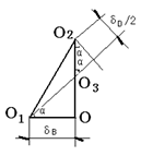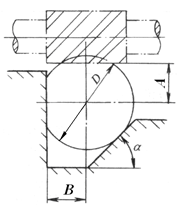 1. 误差分析及计算 此定位方式属多基准定位。直接求出定位过程中一批工件工序基准在工序尺寸A方向上的最大位置变动量,即为尺寸A的定位误差 △D.W。见图,当工件直径D和B均为最小值时,工序基准处于最低位置O1,当工件D和B均为最大时,工序基准处于最高位置O2,定位误差△D.W为O-1O2在工序尺寸方向的投影OO2。则: