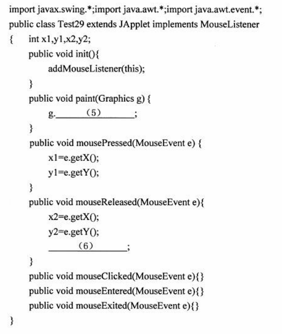下一篇:以下小应用程序实现用鼠标按下、拖动和释放画线段,即线段的两个端点是鼠标按下和释放的位置。
