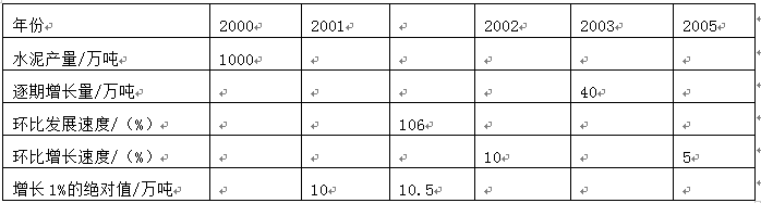 某水泥厂2000-2005年的水泥产量资料如下表所示。(1)计算表中空缺指标数值,并将计算结果填入表中相应位置(保留三位小数)。(2)求2000年到2005年的