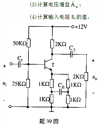 放大电路如题39图所示,已知晶体管的β=50,UˇBEQ=0.6V,各电容足够大,对输入信号频率呈短路。要求:(1)计算静态集电极电流IˇCQ的值;(2)画出微变等效电路;骈赋成熟定型的时期是()