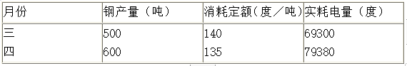 某钢铁企业2012年三、四月份资料如下表计算:(1)三、四月份电力消耗定额指数(2)单位产品电耗指数(3)三、四月份电力消耗的节约或超支