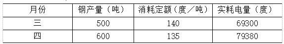 某钢铁企业2009年三、四月份资料如下表:计算:(1)三、四月份电力消耗定额指数。(2)单位产品电耗指数。(3)三、四月份电力消耗的节约或超支量