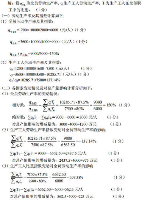 (1)分别计算全部职工及生产工人基期、报告期的劳动生产率及其指数;