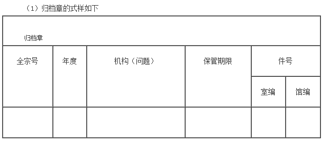 《归档文件整理规则》中规定:"归档文件应依分类方案和排列顺序逐件编号,在文件首页上端的空白位置加盖归档章并填写相关内容。归档章应设置全宗号、年度、保管期限、件号等必备项,并可设置机构(问题)等选择项。"请根据以上要求设计一份归档章的式样,并对各项的填写要求逐一加以说明。