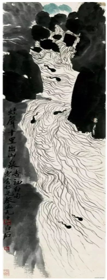 你欣赏齐白石先生的中国画《蛙声十里出山泉》(如图),以对话法为基本指导方法,为大班幼儿设计一次美术欣赏活动。相关资料(仅供参考):有一天,老舍先生到齐白石先生家做客,他从案头拿起一本书,随手翻到清代诗