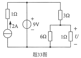 试用戴维南定理求题33图所示电路中的电压U。