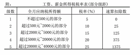 (1)答: 应纳税额=应纳税所得额×税率 王某5月份工资、薪金应纳的个人所得税=(17000-2000)×20%-375=2625元