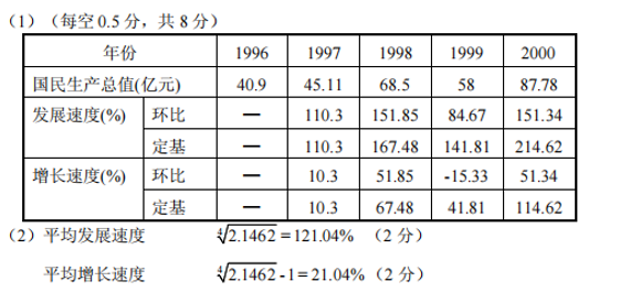 (2)计算1996~2000年的国民生产总值的平均发展速度和平均增长速度。