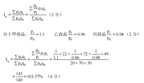 解:(1)销售量属于数量指标,采用拉氏综合指数,同度量因素采用基期的价格作为同度量因素。