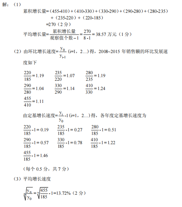 问题:(1)计算2008~2015年销售额的平均增长量。(计算结果保留2位小数)