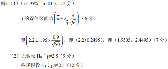 (2)如果超市认为顾客平均付款时间为2.5分钟,要检验超市的说法,请写出检验的原假设和备择假设。(5分)