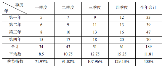 计算季节指数如下表所示