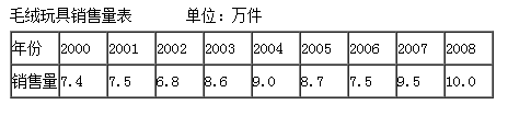 2000~2008年我国毛绒玩具销售资料如题37表,用最小二乘法求直线趋势方程,并预测2009年我国毛绒玩具销售量。(以∑t=0为准)(计算结果保留至小数点后两位数)