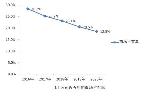 利用折线图描述KJ公司近五年的市场占有率情况。