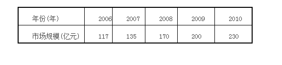 随着市场不断规范,中国移动增值市场从2006年开始进入相对平稳的发展阶段,市场规模增长速度逐年减缓;受2008年奥运会的影响,中国移动增值市场又迎来一个新的发展高潮,此后便趋于稳定。请根据下列数据绘制简单曲线图。