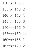 为了研究800米赛跑后学生心律的分布情况,体育老师统计了全班同学一分钟时间脉搏的次数。体育老师把全班学生的脉搏次数范围分成8组,每组的两个端点的差是5,得到如下数据: